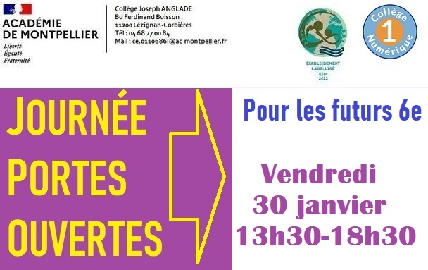 Le collège ouvre ses portes aux futurs élèves de 6e le vendredi 30 janvier de 13h30 à 18h30