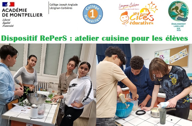 Lundi 26 janvier, 9 élèves issus de classes de cycle 4 (5A, 4A, 4C, 4D, 4G, 3G, 3F) ont rejoint le module ReperS dont la thématique principale cette année tourne autour de la cuisine afin de réaliser les recettes suivantes :