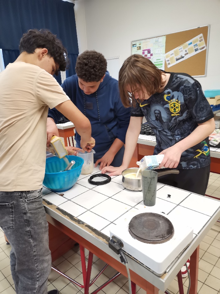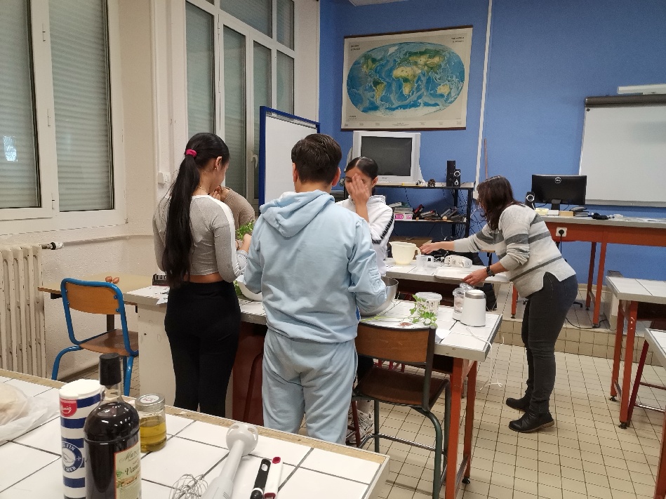 Les élèves ont travaillé sur trois groupes (un par recette) en semi-autonomie. Ce travail leur a appris le travail en équipe, la prise de décision, la répartition des tâches ainsi que la gestion/ le respect du matériel et l’hygiène nécessaire pour ce genre d’activités.